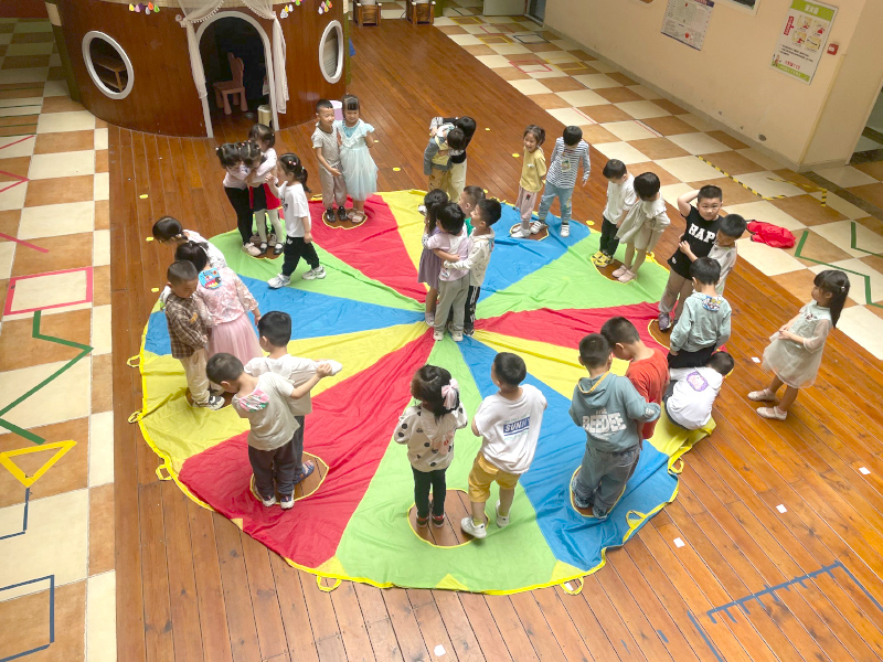 幼兒園體智能訓(xùn)練課程以帶動(dòng)、互動(dòng)、感動(dòng)、活力、安全為原則,穿插音樂律動(dòng),在“學(xué)中玩,玩中學(xué)”,新穎的教學(xué)方式讓幼兒在輕松的游戲中,提升幼兒的學(xué)習(xí)興趣,增強(qiáng)幼兒對(duì)幼兒園的喜愛度。