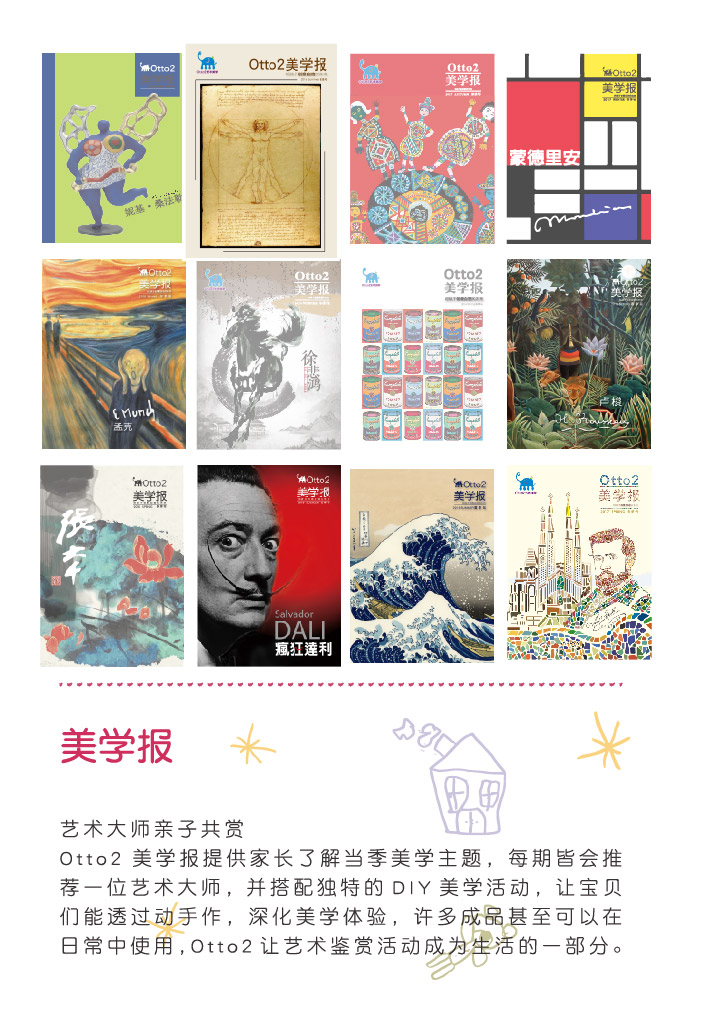Otto2藝術(shù)美學(xué)隸屬于貝晟文教用品貿(mào)易{上海}有限公司,成立于2000年,專注于2-12歲兒童藝術(shù)美學(xué)教育。旗下分設(shè)小象畫畫趣、Otto2美學(xué)合作教室、小象聽聽、Otto2藝術(shù)美學(xué)四大品牌,深耕幼教領(lǐng)域20年,兩岸累計突破240+據(jù)點。Otto2以培養(yǎng)孩子的快樂與自信為教學(xué)理念,堅持以孩子的觀點看世界,以美學(xué)教育為基礎(chǔ)透過游戲、體驗、探索、創(chuàng)作,讓孩子感受主動學(xué)習(xí)的快樂,培養(yǎng)孩子創(chuàng)意自信的能量。