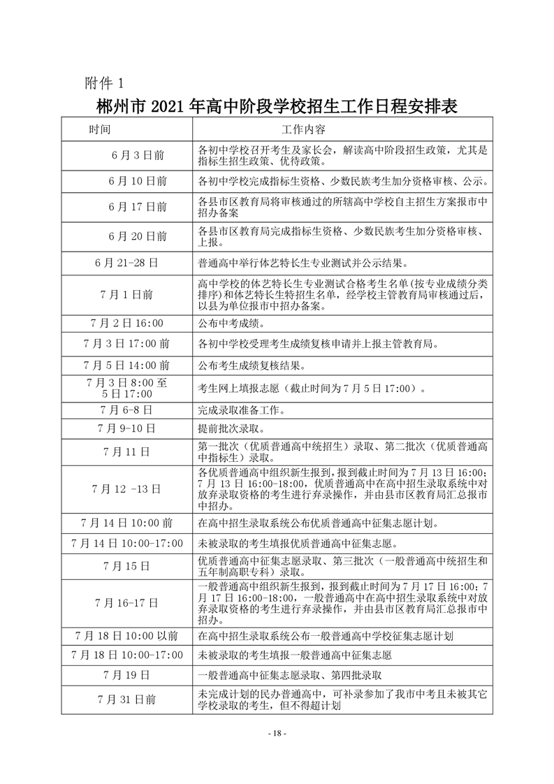 1.郴州市2021年高中階段學(xué)校招生工作日程安排表