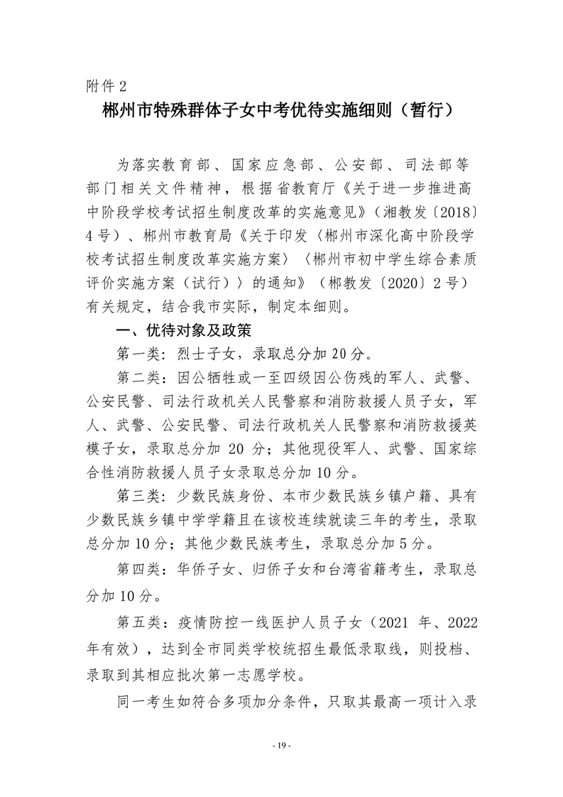 2.郴州市特殊群體子女中考優(yōu)待實施細(xì)則(暫行)