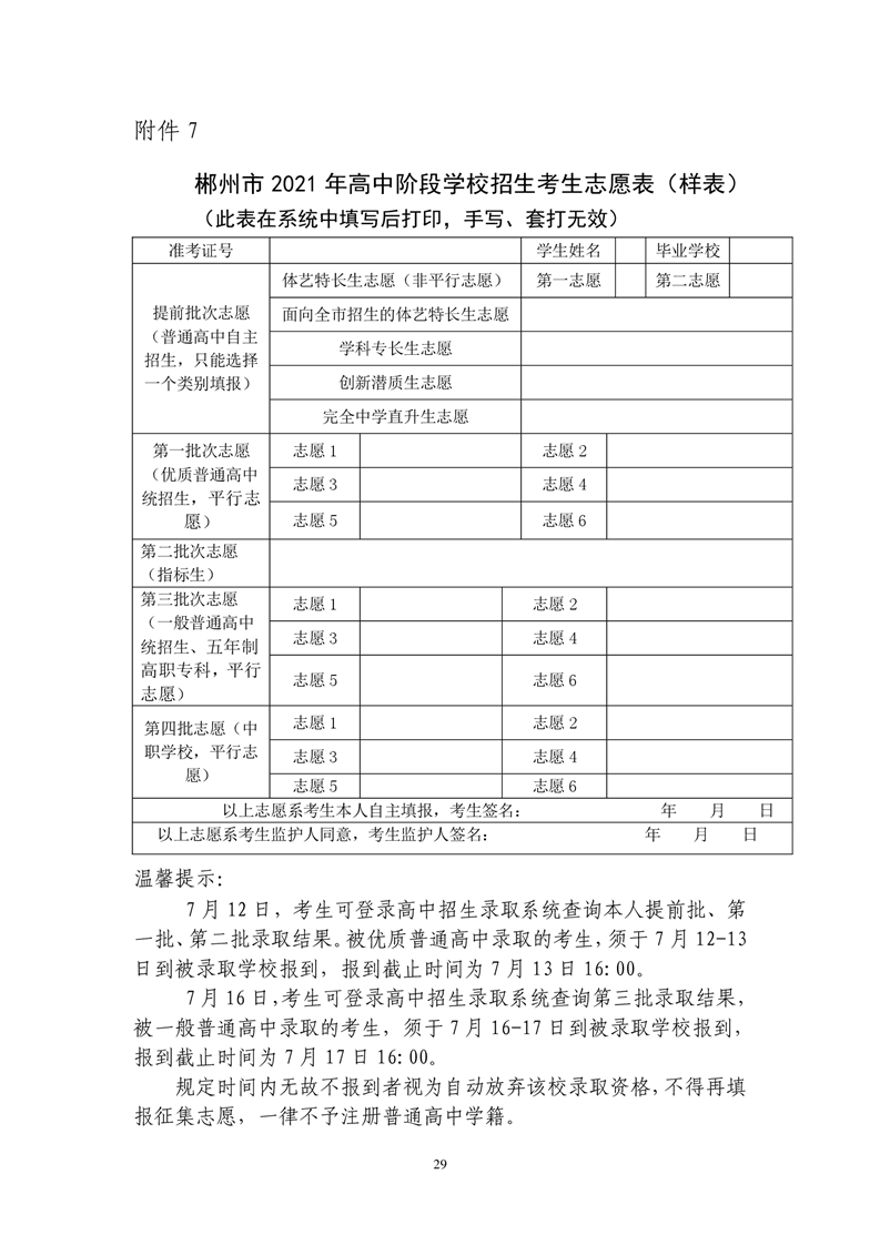 7.郴州市2021年高中階段學(xué)校招生考生志愿表(樣表)